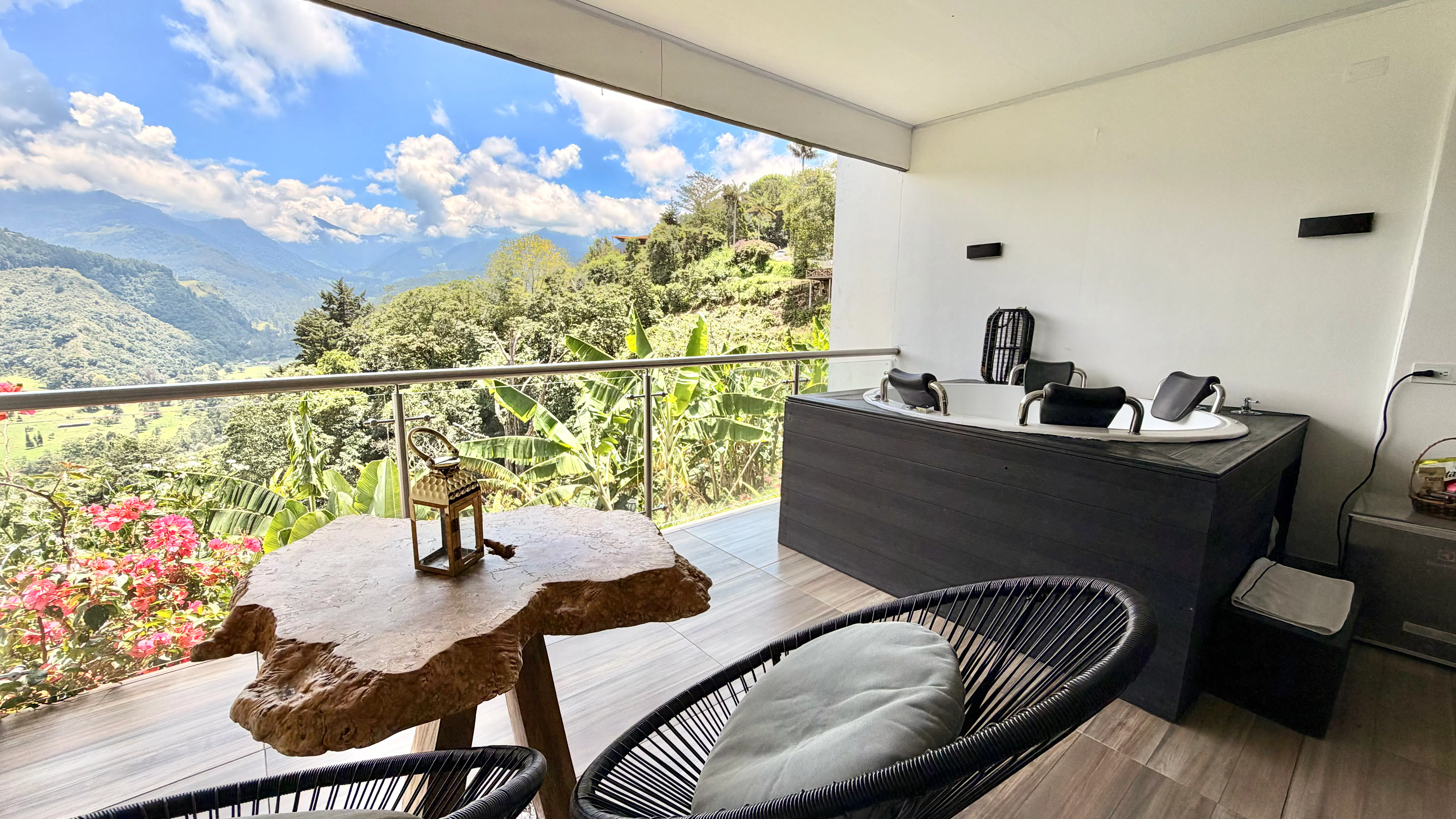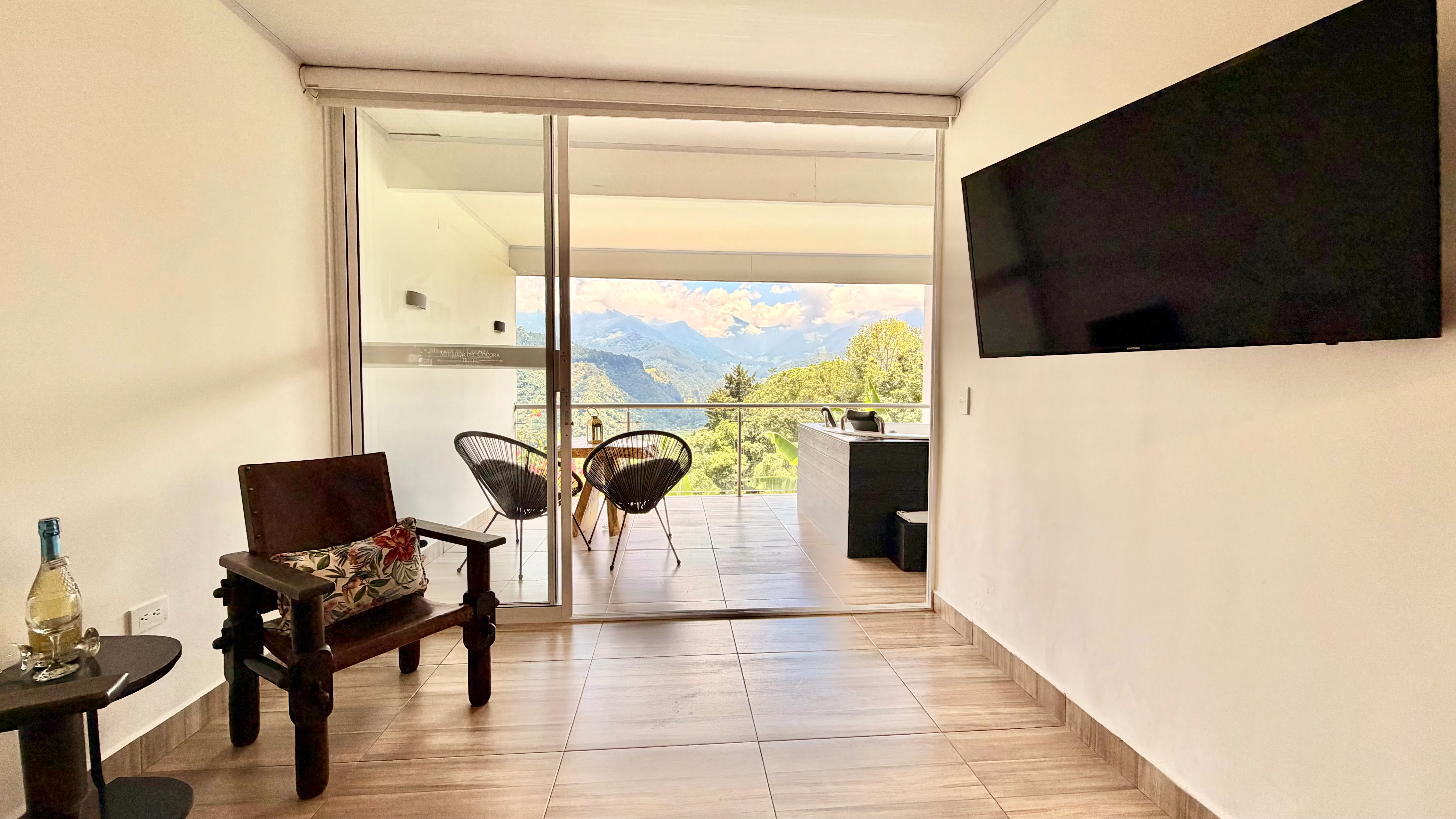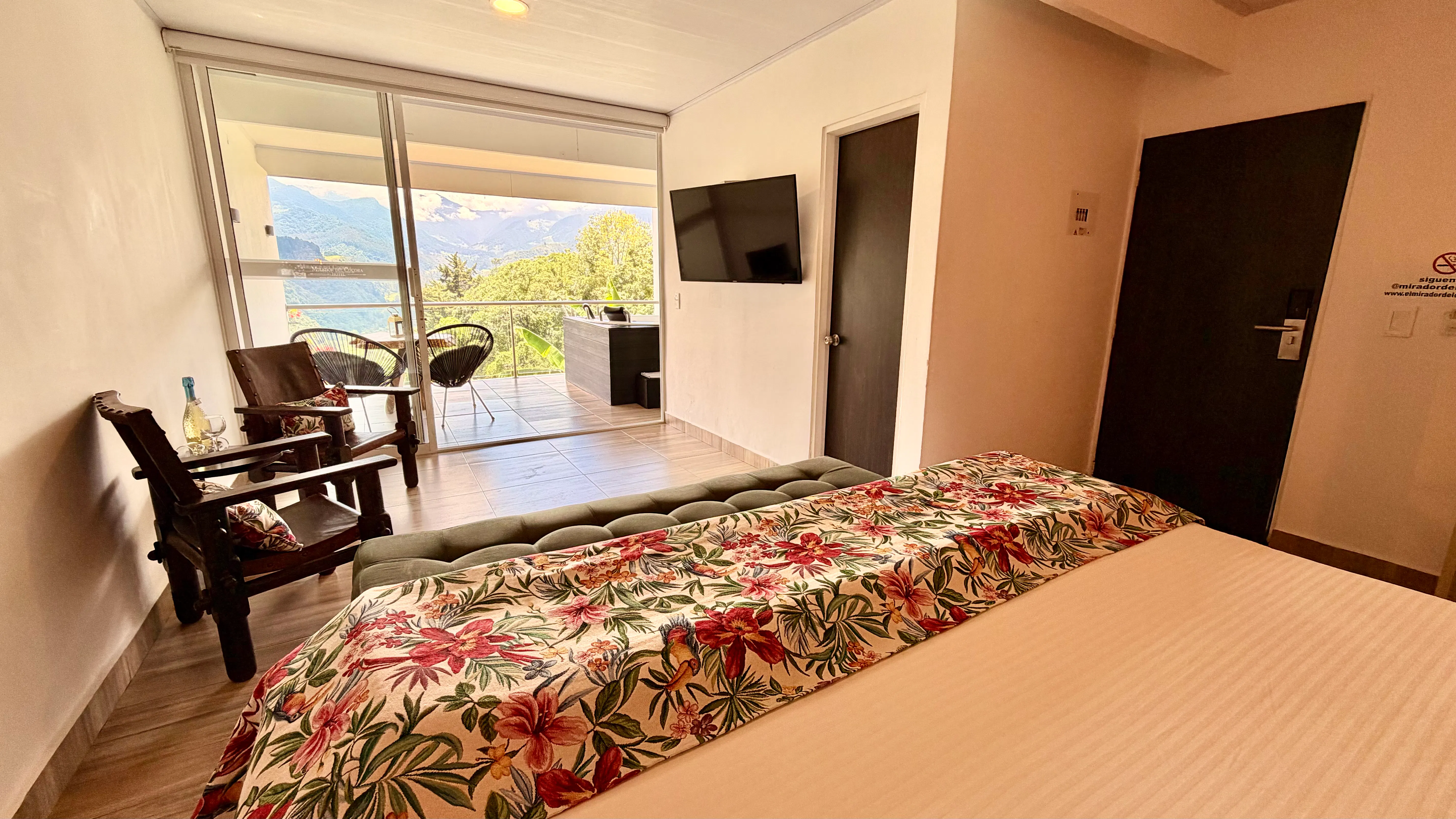 El Hotel Mirador del Cocora, el más exclusivo de los Hoteles en Salento, se complace en presentar esta hermosa habitación llamada "Balcón de Valle. Es una Habitación Junior Suite recienteme construida, cuenta con balcón privado con Jacuzzi para que disfrutes del aire puro y de las mejores vistas del Valle de Cocora.